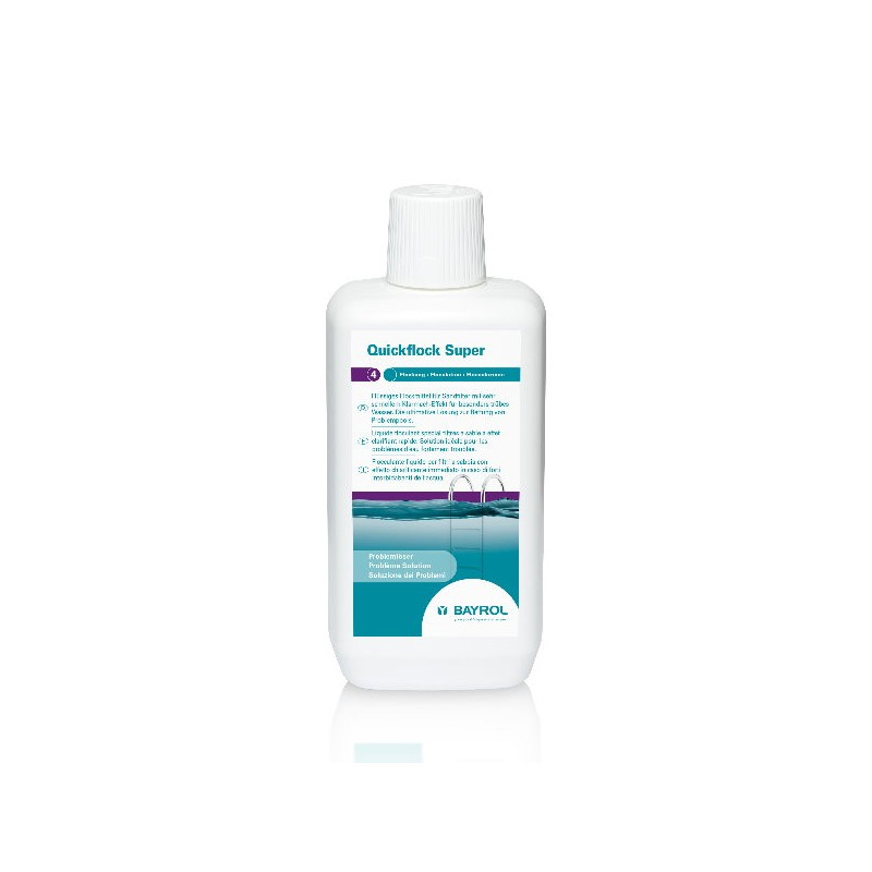 Quickflock Super ist ein flüssiges Flockmittel zur schnellen Entfernung von Trübungen im Pool. Die spezielle Rezeptur sorgt dafür, dass der Sandfänger "angeschärft" wird, dadurch feinste Partikeln filtrierbar gemacht und im Filter zurückgehalten werden. Quickflock Super ist besonders bei bereits stark trübem Poolwasser sehr effizient.