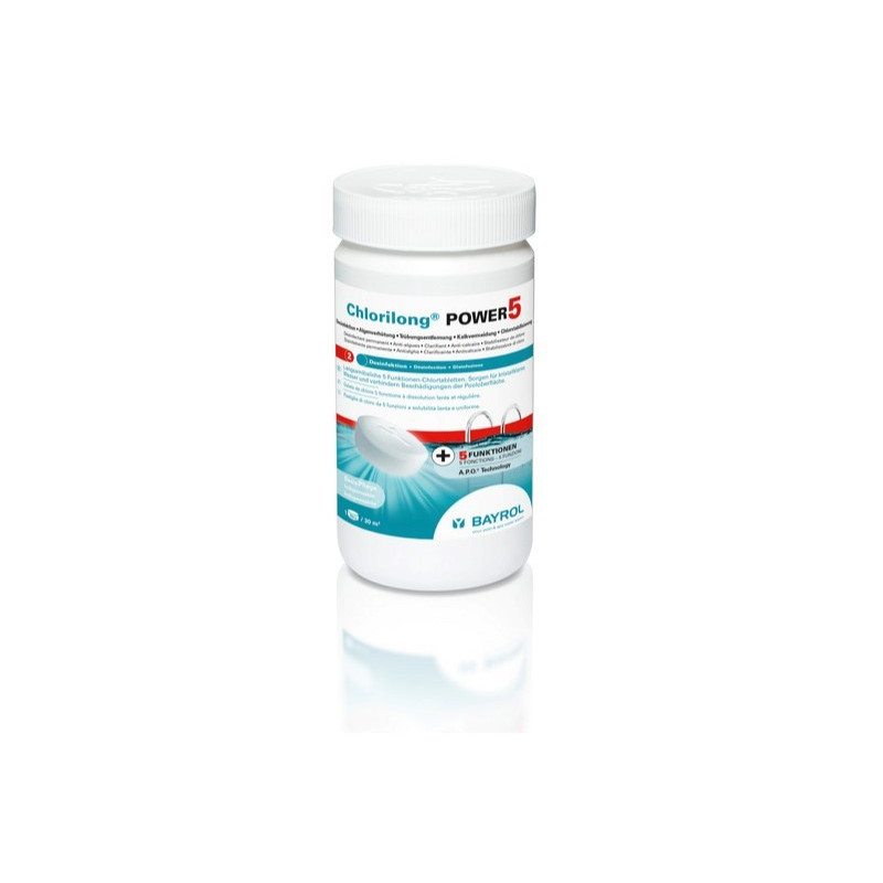 Neben der Verwendung von hochwertigen Rohmaterialien wird bei der Pressung von Chlorilong Power5 Chlortabletten ein innovatives Verfahren angewendet: die A.P.O.-Technologie. Diese Technologie stellt sicher, dass sich die Tablette sehr gleichmäßig auflöst und immer eine konstante Menge Chlor an das Wasser abgibt. Dies bietet Ihnen zusätzliche Sicherheit bei der Wassserdesinfektion Ihres Pools. Chlorilong Power5 Chlortabletten sorgen für kristallklares Wasser und verhindern Beschädigungen der Pooloberfläche, da sie kein Kupfersulfat enthalten.