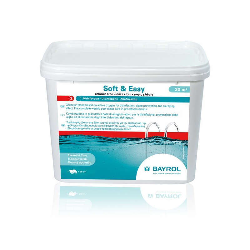 Soft & Easy ist die chlorfreie Alternative für die Desinfektion von Poolwasser. Die Granulat-Kombination auf Basis von Aktivsauerstoff sowie Algizid sorgt für eine zuverlässige Desinfektion und Verhinderung von Algenwachstum. Zusätzlich enthält Soft & Easy einen Klareffekt, der das Poolwasser noch brillanter macht. Soft & Easy sorgt für ein geruchloses und sanftes Wasser.