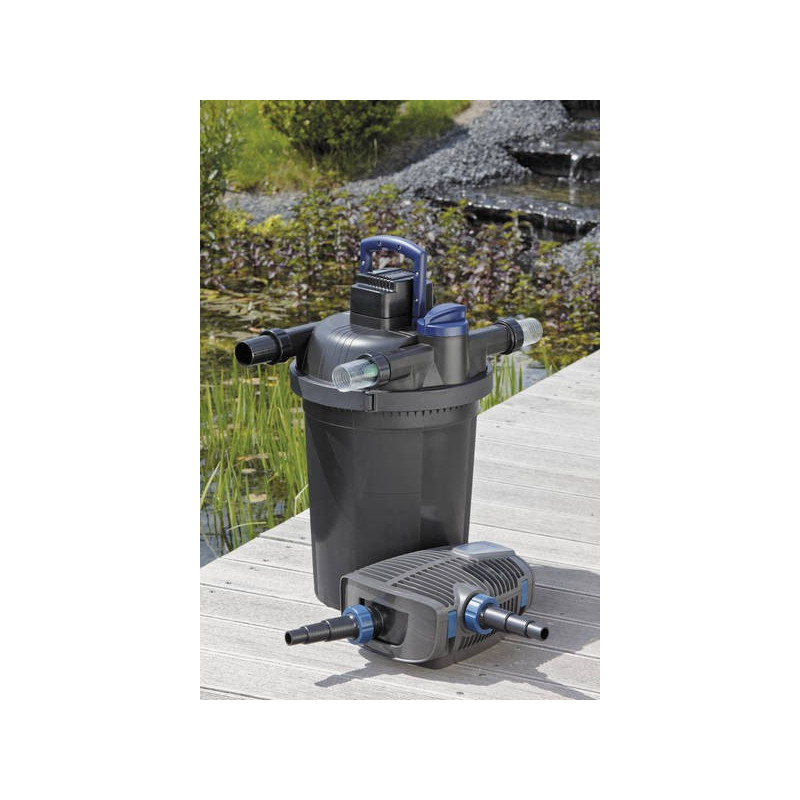 • Komplettset enthält: FiltoClear Druckfilter inkl. UVC-Vorklärgerät und passende Filter- und Bachlaufpumpe AquaMax Eco Premium