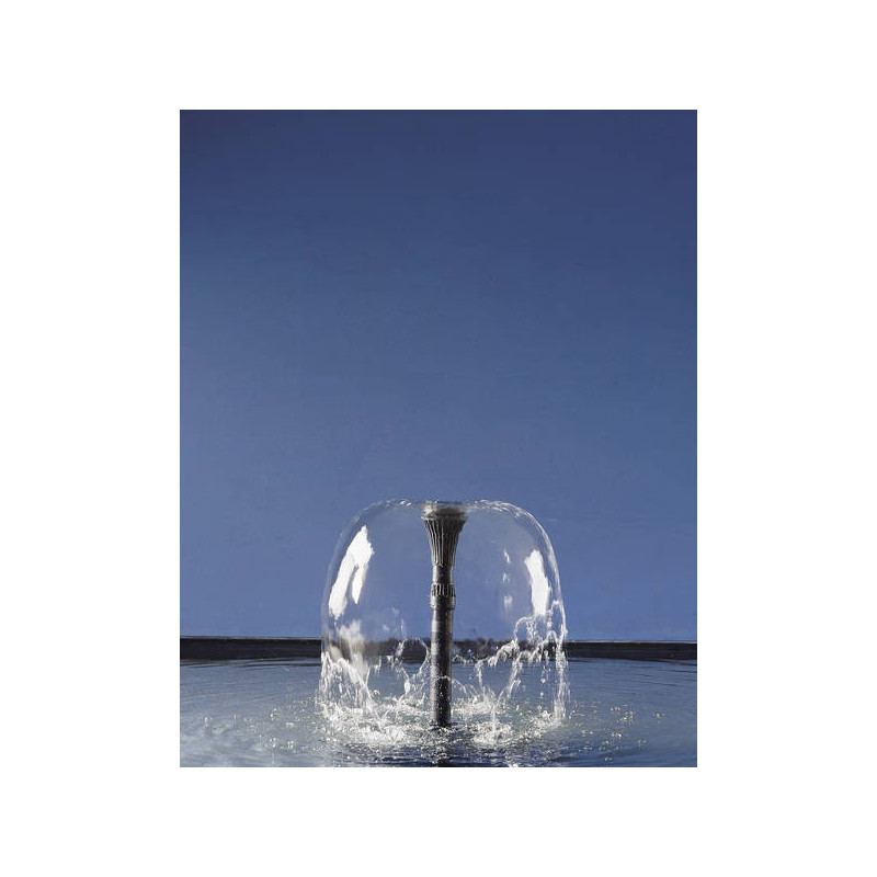 Wie eine gläserne Glocke wölbt sich das Wasser über der Düse. In einem von unsichtbarer Hand geformten Bögen strömt es anschließend harmonisch hinab.
