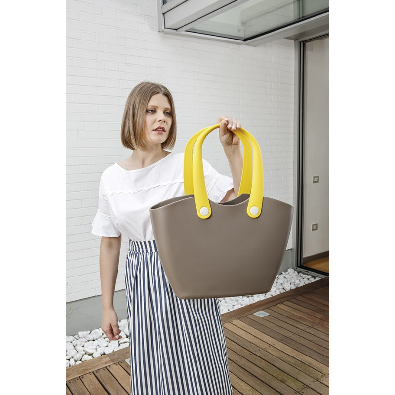 Die flexible Kunststofftasche im praktischen XL-Shopper-Format. Diese modische Kunststofftasche eignet sich als Einkaufstasche ebenso perfekt, wie als Garten-, Camping-, Strand- oder Pooltasche.