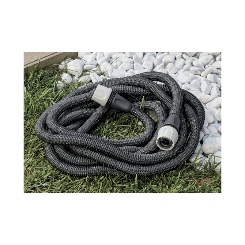 Selbstausdehnender Schlauch zur Bewässerung von Pflanzen und Blumen wie auch die Reinigung von Oberflächen. Der Schlauch dehnt sich bei Wasserdruck auf 20 m aus. Nach dem Gebrauch entleert sich der Schlauch selbsttätig und zieht sich platzsparend auf seine ursprüngliche Länge zurück.