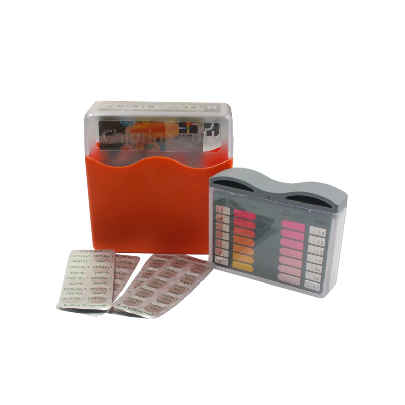 Der mit zwei Messkammern versehene Tester wird mit Poolwasser gefüllt und die entsprechenden Reagenztabletten in die Testkammern gegeben, die eine Verfärbung des Wasser herbeiführen. Das verfärbte Wasser wird mit der Farbtabelle auf dem Tester verglichen und die Messwerte einfach abgelesen.