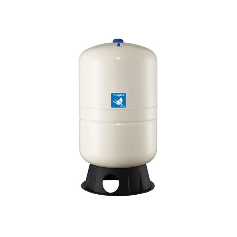 Die PressureWave - Behälter sind serienmäßig mit einer Schale aus reinem Polypropylen ausgekleidet und mit einer von der FDA zugelassenen hochwertigen Butylmembrane ausgestattet. Diese wird mit Hilfe eines Stahlringes an der Wand des Behälters fixiert. Das durch einen Schraubdeckel mit integriertem O-Ring zusätzlich versiegelte Luftventil aus Messing verhindert das Entweichen von Luft. Wasser wird dem Behälter durch einen patentierten Edelstahl-Wasseranschluss zugeführt. Sowohl die Membrane als auch die Polypropylen-Auskleidung sind in spezifischen Verschleißbereichen verstärkt und gewährleisten so eine längere Lebensdauer. Alle Innenteile, einschließlich Luftventil, sind abgerundet, um das Reißen der Membrane unter Extrembedingungen zu verhindern. Der Wasseranschluss zeichnet sich durch eine einzigartige Wasser-Luft-Doppeldichtung aus. Er sorgt damit für die vollkommene Abdichtung und Wartungsfreiheit der Druckausdehnungsgefäße.