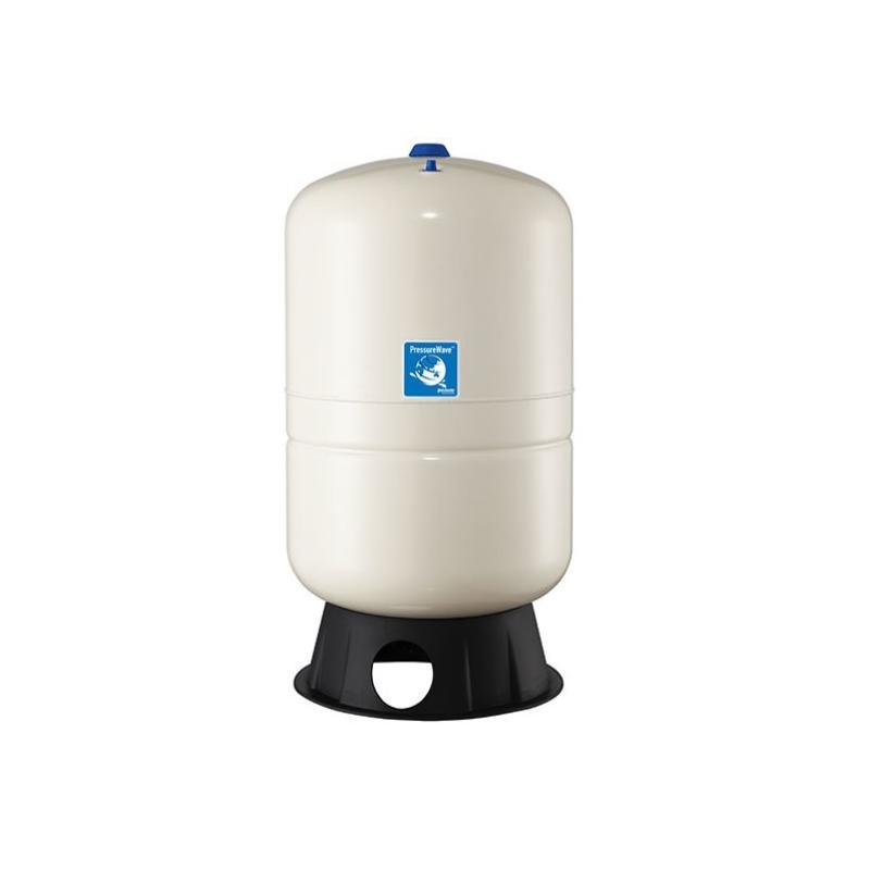 Die PressureWave - Behälter sind serienmäßig mit einer Schale aus reinem Polypropylen ausgekleidet und mit einer von der FDA zugelassenen hochwertigen Butylmembrane ausgestattet. Diese wird mit Hilfe eines Stahlringes an der Wand des Behälters fixiert. Das durch einen Schraubdeckel mit integriertem O-Ring zusätzlich versiegelte Luftventil aus Messing verhindert das Entweichen von Luft. Wasser wird dem Behälter durch einen patentierten Edelstahl-Wasseranschluss zugeführt. Sowohl die Membrane als auch die Polypropylen-Auskleidung sind in spezifischen Verschleißbereichen verstärkt und gewährleisten so eine längere Lebensdauer. Alle Innenteile, einschließlich Luftventil, sind abgerundet, um das Reißen der Membrane unter Extrembedingungen zu verhindern. Der Wasseranschluss zeichnet sich durch eine einzigartige Wasser-Luft-Doppeldichtung aus. Er sorgt damit für die vollkommene Abdichtung und Wartungsfreiheit der Druckausdehnungsgefäße.