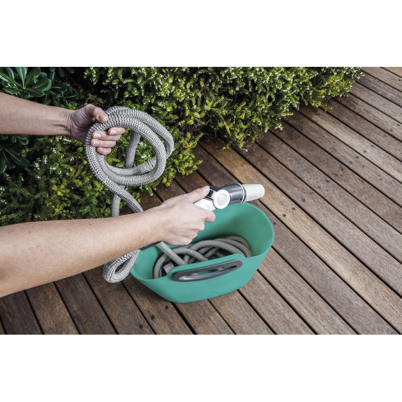 Komplettset selbstausdehnender Schlauch zur Bewässerung von Pflanzen und Blumen. Ideal geeignet für Balkone, Terrassen oder kleine Gärten. Praktisch, leicht und einfach zu Benutzen. Der Schlauch ist 10 Meter lang und dehnt sich bei Wasserdruck auf 30 Meter aus. Nach dem Gebrauch entleert sich der Schlauch selbsttätig und zieht sich auf seine ursprüngliche Länge von 10 Meter zurück. Das Set enthält eine praktische Verstautasche, in der der Schlauch nach dem Gebrauch platzsparend und ordentlich aufbewahrt werden kann.