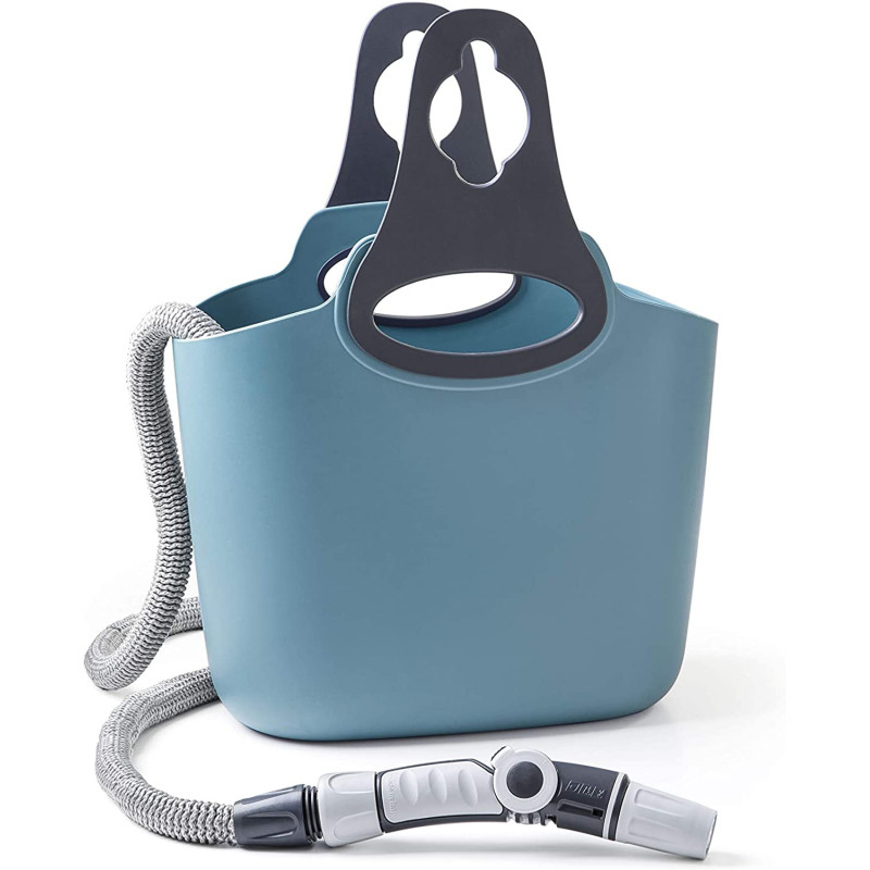 Selbstverlängerndes Schlauchset zur Bewässerung von Pflanzen und Blumen und zum Reinigen von Außenflächen. Ideal für Gärten, Terrassen oder Balkone. Praktisch, leicht und einfach zu bedienen, dank des Schlauchs, der sich nur mithilfe des Wasserdrucks selbstständig verlängert. Nach dem Gebrauch zieht sich der entleerte Schlauch vollständig zurück und sammelt sich in dem praktischen kleinen mitgelieferten Behälter, der eine einfache Verstauung ermöglicht.