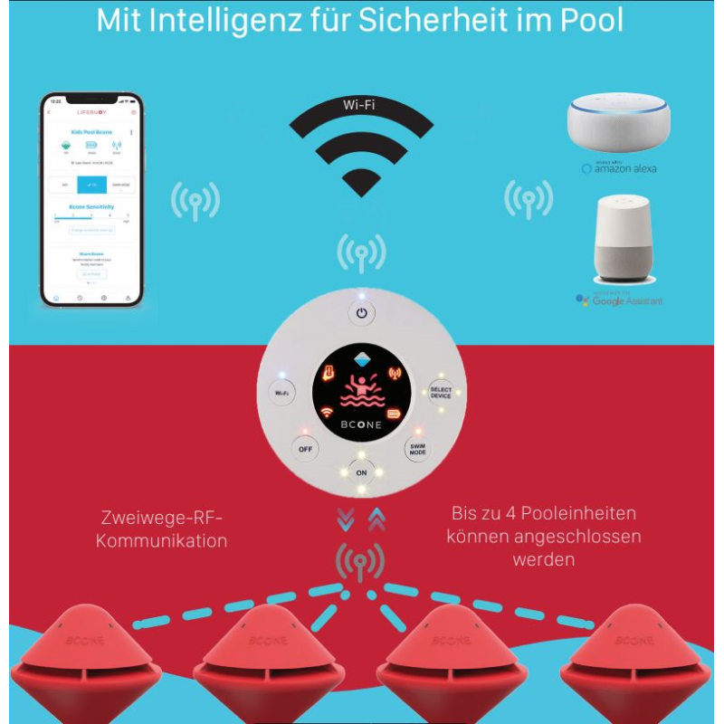 Unser Lifebuoy bietet maximalen Schutz für Kinder und Haustiere bei minimalem Anwendereinsatz basierend auf fortschrittlichen Sensoren und einen komplexen Algorithmus. Bis zu 4 Pooleinheiten können mit einer Heimeinheit verbunden werden und es kann mit Alexa und Google-Assistent verbunden werden.