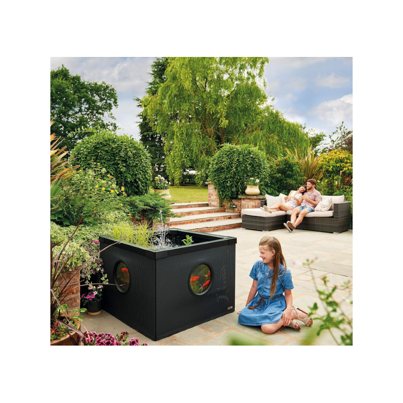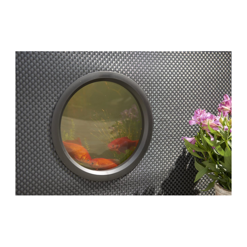 Leichte und einfache Montage, innerhalb von 30 Minuten. Kapazität ca. 500 Liter. Umweltfreundliche Verarbeitung aus Polyrattan. Mit 3 Fenstern zum Betrachten der Fische und der Wasserwelt ist dieses Aquarium ein Blickfang auf jedem Balkon, Terrasse, Veranda oder im Garten.