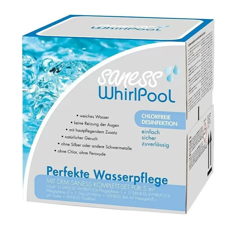 Diese Wasserpflege von Saness ist perfekt auf die Anforderungen eines Whirlpools abgestimmt und sorgt ca. 5 Monate lang für hygienisches und absolut klares Wasser. Dabei wird bewusst auf Chlor, oxidierende Substanzen oder Schwermetalle verzichtet. Dadurch erhalten Sie weiches und geruchsneutrales Wasser und verhindern Reizungen an den Augen und der Haut. Diese Wasserpflege für Whirlpools ist für Kinder und Menschen mit Empfindlichkeiten und Allergien bestens geeignet und oft die einzige Möglichkeit, den Whirlpool unbeschwert zu genießen, ohne ständig das Wasser zu erneuern.