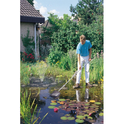 Regelmäßige Pflege ist wichtig für gesundes Wachstum der Pflanzen im und am Teich. Dazu empfiehlt sich die Teichschere FlexiCut 2 in 1, mit der sich das Schnittgut gleichzeitig festhalten und schneiden lässt. Pflanzenreste können damit ebenfalls einfach aus dem Wasser entfernt werden. Auch bis 2 Meter entfernte Zweige oder Blätter lassen sich mit der neuen, teleskopierbaren Premium-Teichzange EasyPick greifen. So geht einfaches Arbeiten am Teich!